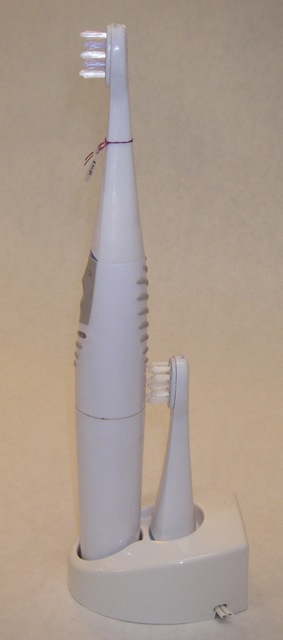 | Toothbrush Type: | Travel Electric sonic timed comes with a brush, a power recharger base, 2 replaceable heads, 2 power floss heads, 2 tongue cleaner heads, and 4 packs of bleaching gel |
