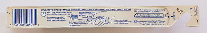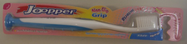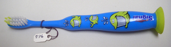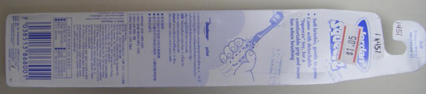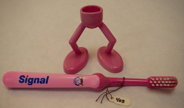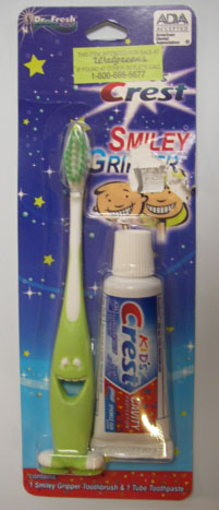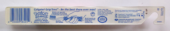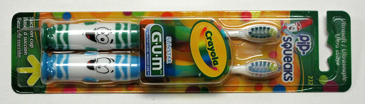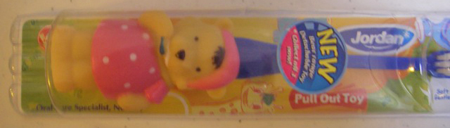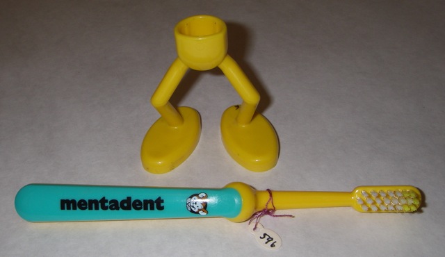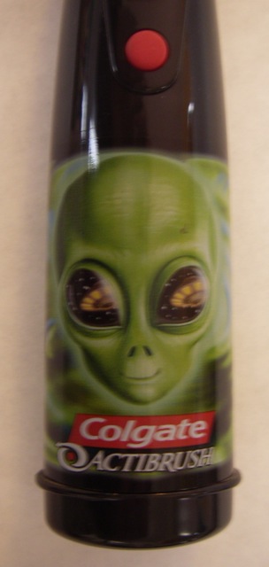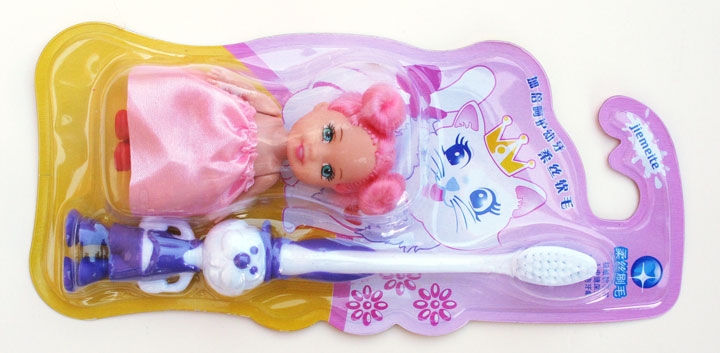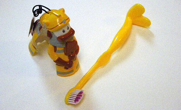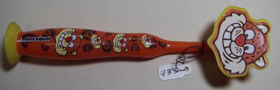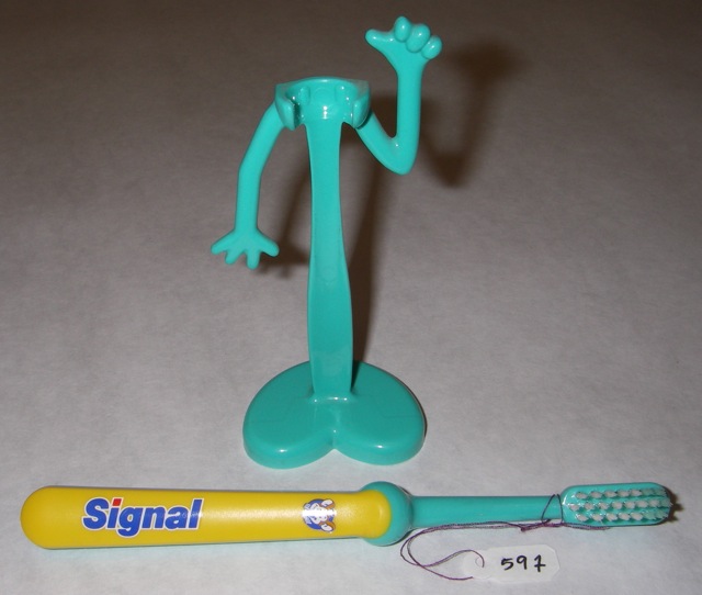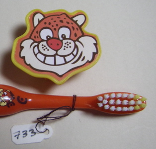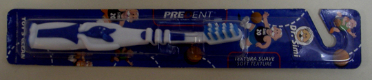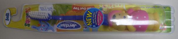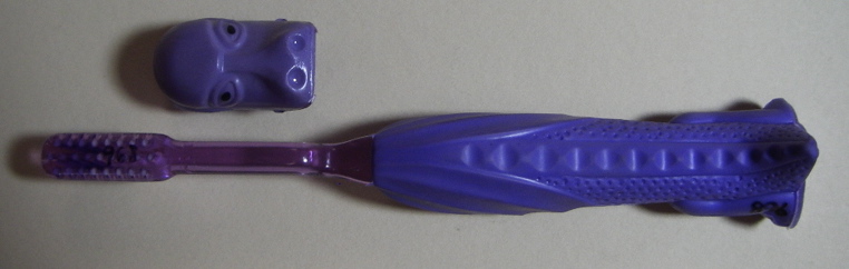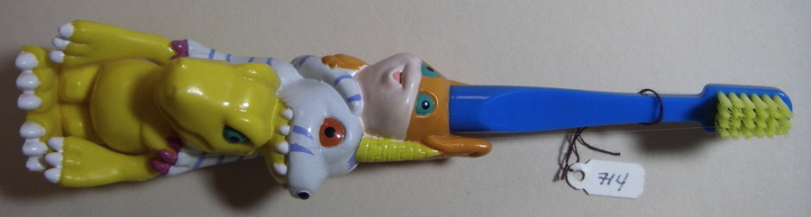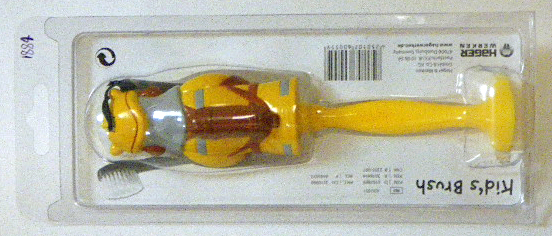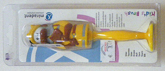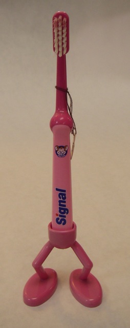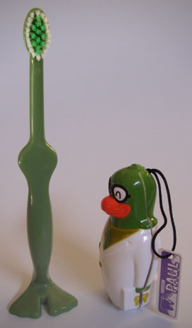| Toothbrush Type: | novelty, anthropomorphic, standing, striped toothpaste logo |