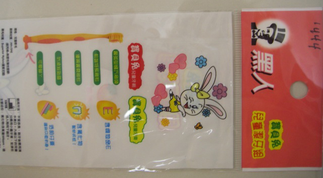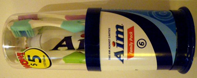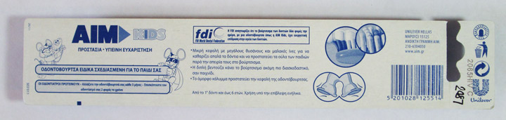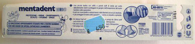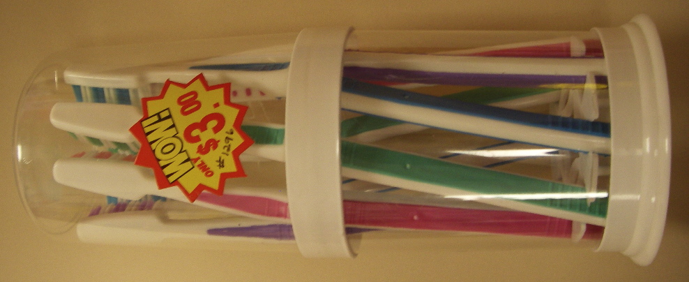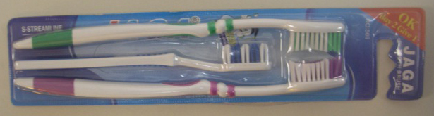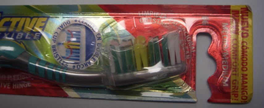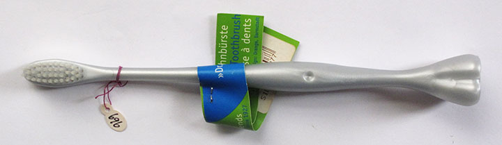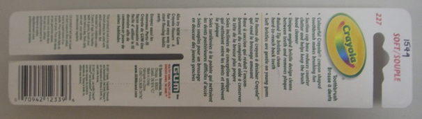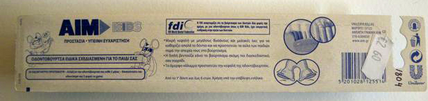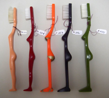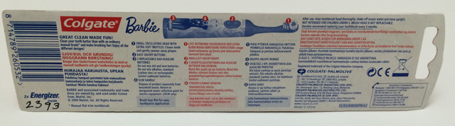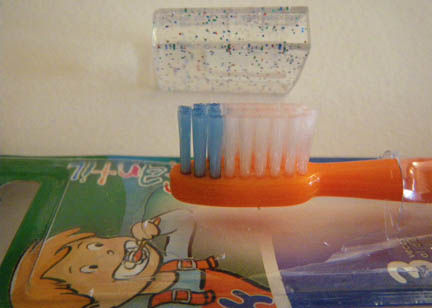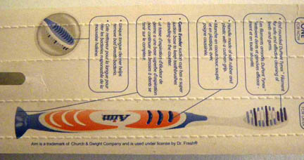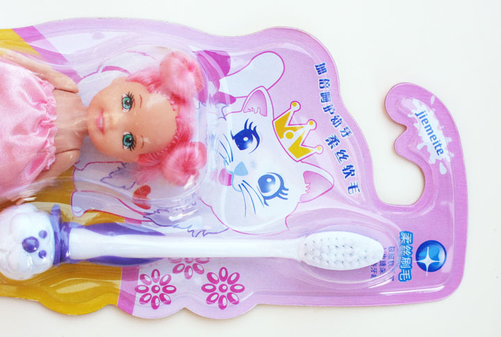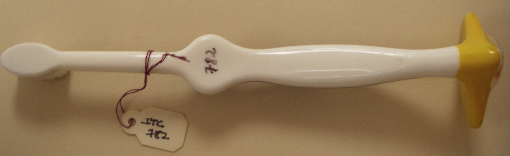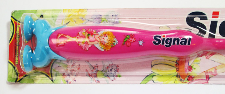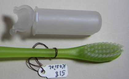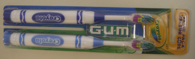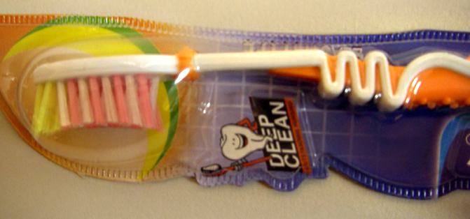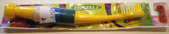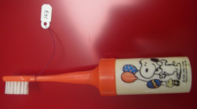| Toothbrush Type: | novelty, anthropomorphic, standing, striped toothpaste logo |