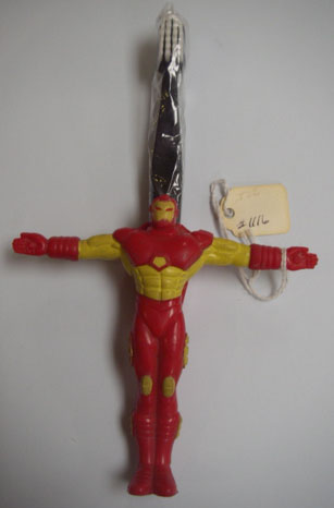 | Toothbrush Type: | Standing superhero kids' novelty ages 4+ licensed super hero silver needs base with prongs to stand |