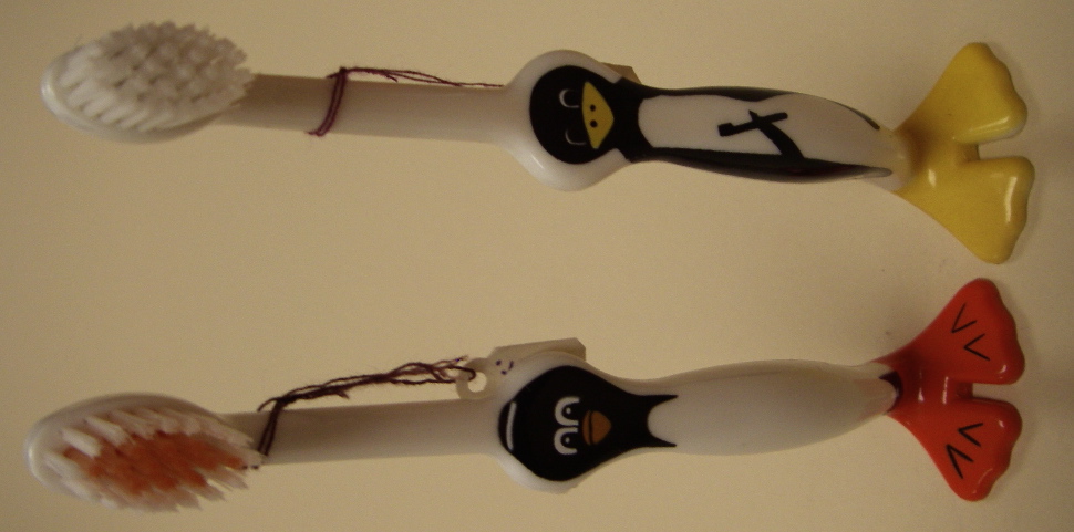 | Toothbrush Type: | foreign, kid novelty, figurative handle, standing, penguin feet |