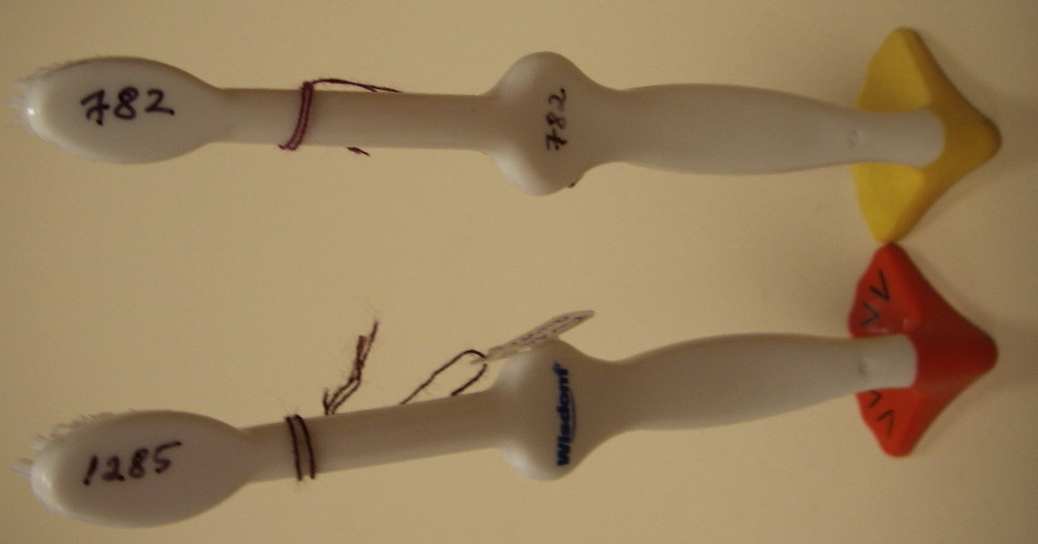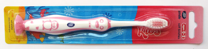 | Toothbrush Type: | Anthropomorphic, standing, belly tummy Smiley face bristle cap |