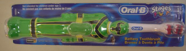 | Toothbrush Type: | kids' novelty standing superhero ages 4+ needs base with prongs to stand |