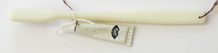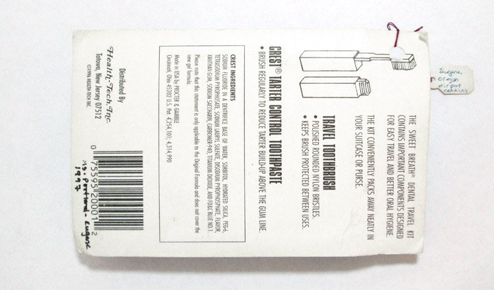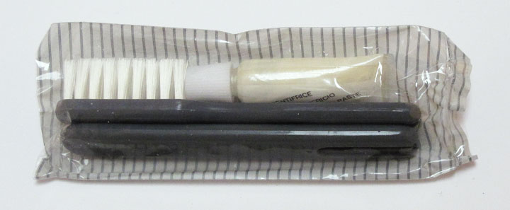 Stiched paper bag package with folding toothbrush and paste![]() |