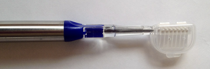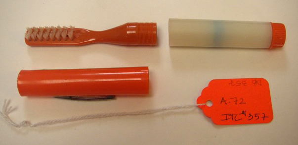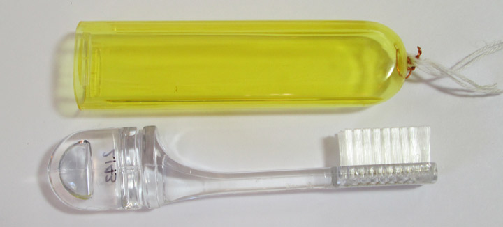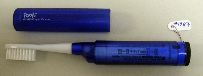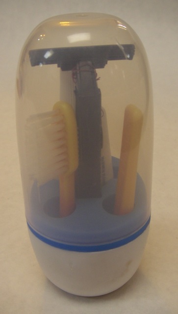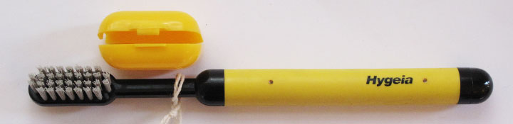 | Toothbrush Type: | Travel (Neck and Handle and held together by an axel, the top of handle locks both into place), comes in clear protective case |