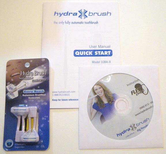 | Toothbrush Type: | Travel Electric sonic timed comes with a brush, a power recharger base, 2 replaceable heads, 2 power floss heads, 2 tongue cleaner heads, and 4 packs of bleaching gel |