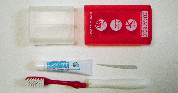 Travel case as toothbrush handle with GUM toothpaste![]() |