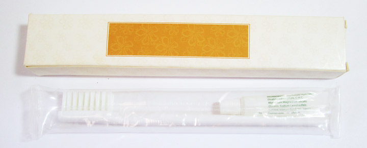 | Model: | Hotel Travel Toothbrush w/travel cap & Madreperla dentifrice |